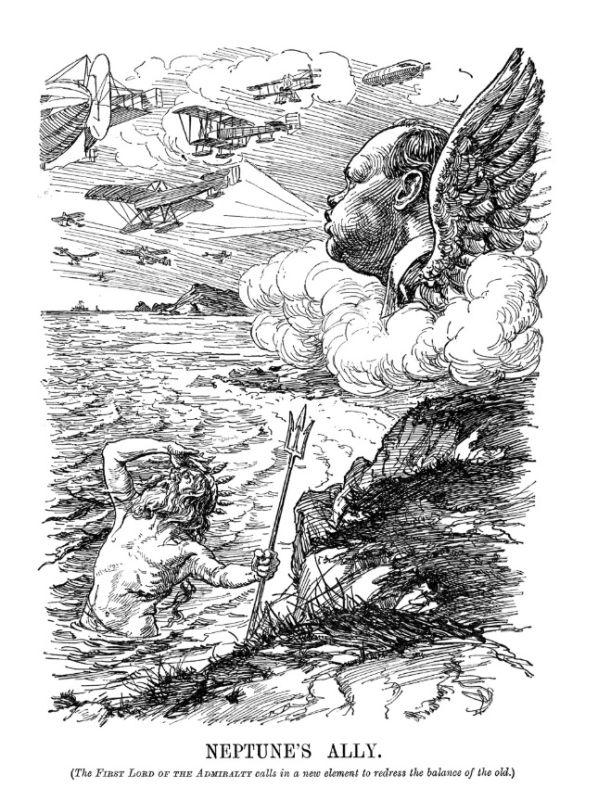 Churchill’s naval advocacy got him a new position in October 1911 as First Lord of the Admiralty, the political head of the Royal Navy. He spent two and a half years focusing on naval preparation, scrutinizing German naval developments and visiting every capital ship and naval base in the British Isles with his official Admiralty yacht. He supported a shift from coal- to more modern oil-powered engines, along with acquiring a 51% share in the profits of the Anglo-Persian Oil Company to make sure the navy will have enough fuel. (On the downside, the move away from coal ended up hurting the British coalmining industry, which lost a major customer.) Churchill also pushed for development of the Royal Naval Air Service, and has coined the word “seaplane.”
