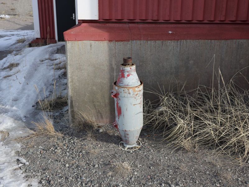 C-130 Hercules transport planes were frequent visitors to Sondrestrom during the Cold War. The mighty four-propeller planes found the runway too short for a safe takeoff, and thus used booster rockets for RATO (rocket-assisted take-off) operations. Some of these abandoned rockets eventually found a new job as large and unusual ashtrays scattered around the airport, as evidenced by some of these photos.